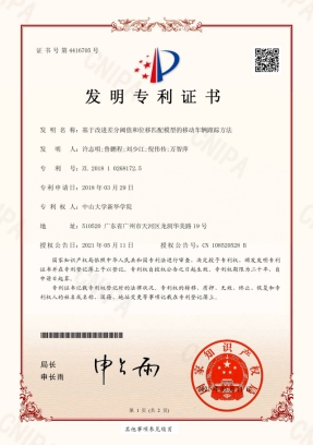 永利yl23411信息科学学院又一项发明专利“基于改进差分阈值和位移匹配模型的移动车辆跟踪方法”(专利号:ZL 201810268172.5)获得授权。