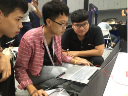 为了有充分的调试时间,23日中午我们的参赛人员乘车到达佛山顺德,马不停蹄地赶往住宿地点,并开始调试参赛作品。由于受到比赛场地光线等多种因素的影响,我们在学校调试好的作品需要更改很多,工作量极其大。但我们的参赛选手用坚强的意志力战胜困意、劳累等困难,经过23日至24日的时间调试好了作品,使参赛团队能够顺利参加25日的比赛。
