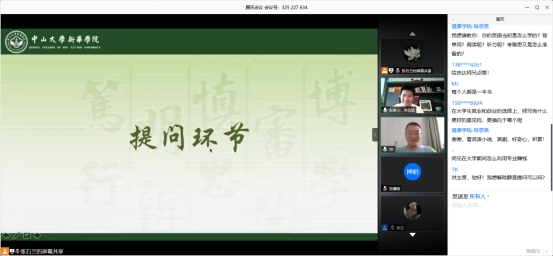 结束分享之后,洪志达先生耐心解答师生所提出来的问题。洪志达先生大学时期的辅导员、现任药学院党总支副书记陶强老师,出现在会场以提问方式给洪志达先生带来惊喜。相信通过这样的答疑解惑环节,不仅解答了同学们在学业和就业上的问题,还让学生们感受到了浓厚的师生情谊,学生们也会更加的认识到自身真正需要什么,在大学该去学习什么,在之后的学习生活中迎难而上,为自己的将来做出规划。
