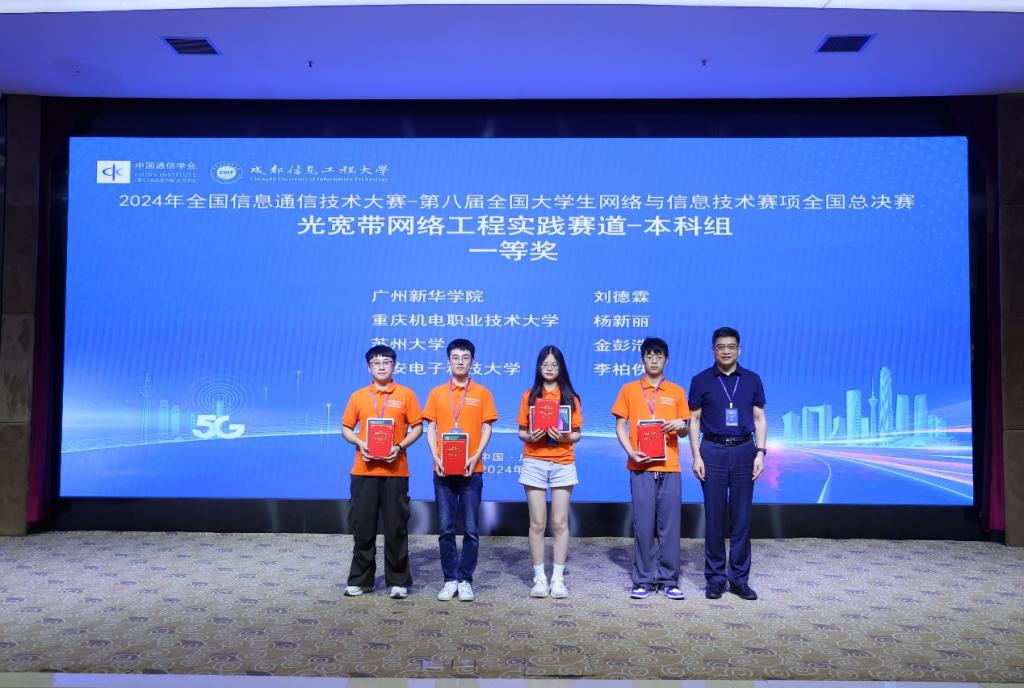 2024年全国信息技术大赛——第八届全国大学生网络与信息技术大赛全国总决赛于7月21日在成都信息工程大学落下帷幕。作为目前信息通信领域最具影响力的大学生竞赛之一,赛事共设三大赛道,分别是5G网络工程实践赛、光宽带网络工程实践赛以及开源鸿蒙原生应用设计赛。本次大赛吸引了来自全国500多所高等院校的上万名学生参赛,经过激烈角逐,永利yl23411永利yl23411,永利yl23411学子斩获国赛一等奖1项、二等奖1项、三等奖2项,管理学院学子斩获国赛二等奖1项。指导老师为信息与智能工程学院梁立容老师和吴筠老师。