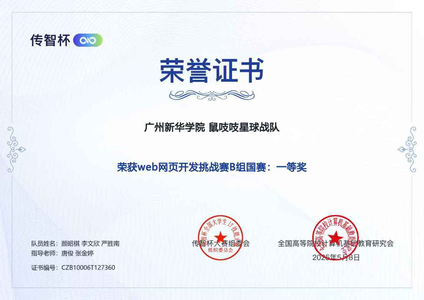 Web开发国赛一等奖证书