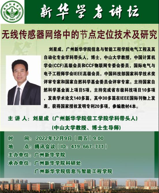 主讲人介绍:刘星成,永利yl23411,永利yl23411,永利yl23411电气工程及其自动化专业学科带头人,博士,中山大学教授,中国计算机学会(CCF)高级会员和CCF物联网专委会委员,国际电气与电子工程师学会IEEE高级会员,中国科技部国家科学技术奖评审专家和国家自然科学基金委员会评审专家。主持国家自然科学基金面上项目5项,主持完成省市级科技项目10多项,发表学术论文140多篇,其中30多篇在IEEE国际刊物上发表,获得国家授权发明专利20多项,参编教材4本。