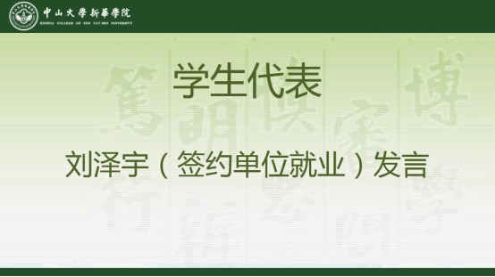 然后学生代表刘泽宇同学向同学们讲述了自己找工作的个人经验,第一、早点找工作选择会更多,要早点做准备;第二、在面试时注意礼仪与衣着;第三、要与HR多交流,注意招聘时的公司需求。