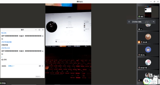 联欢会上赵小蕾老师同她孩子以及各位同学们的演唱,惹得倾听的同学敲字呐喊。男生们清唱情歌,低沉的嗓音让人着迷。女生那银铃般的悦耳歌声,让人心情愉悦。聊天框内成了打气加油区,为害羞而犹豫不决的同学打气出演,更有陪同演唱者。作为其辅导员的吕娇老师此时此刻更像是一名学生,与大家一起狂欢。在大家的歌声中我们能听出对美好明天的希望,相信大家抗击疫情的信心将大大增加。