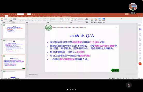 2022年3月19日晚上8:00,与导师面对面(关于研究生入学面试和录取问题)讲座在腾讯会议如期举行。