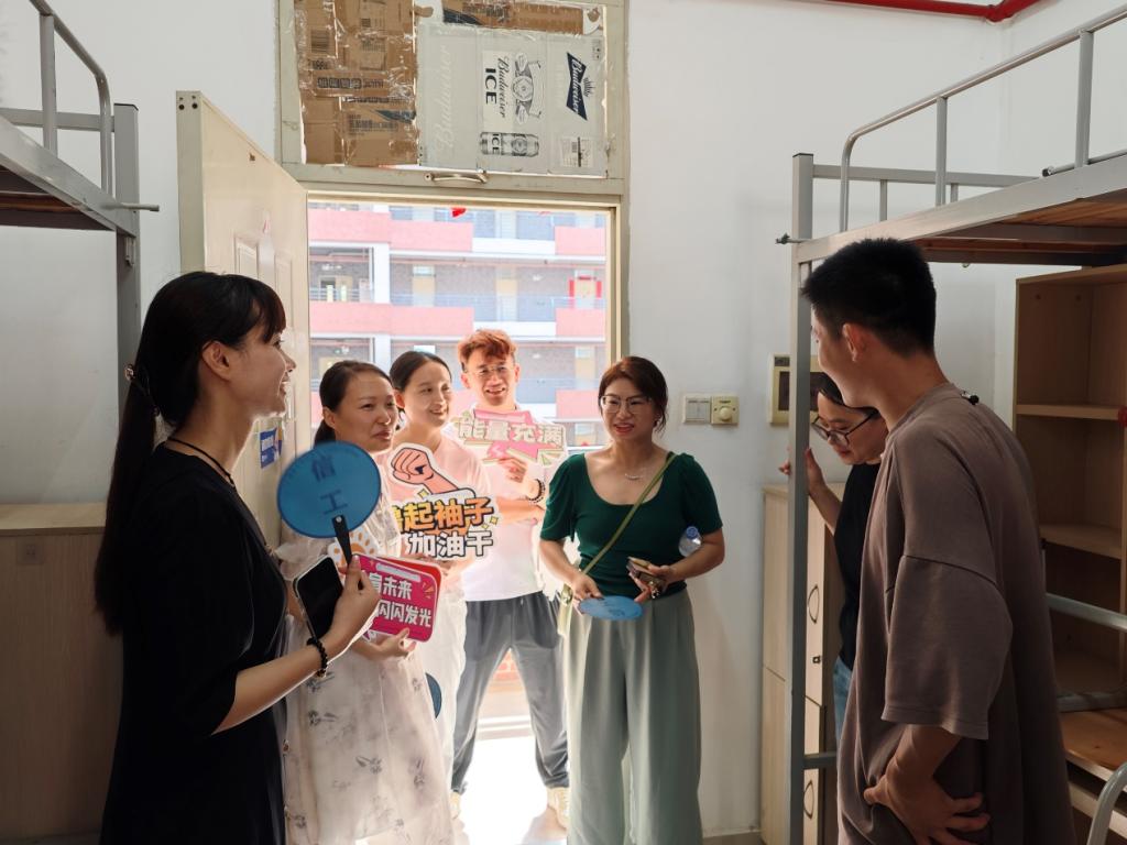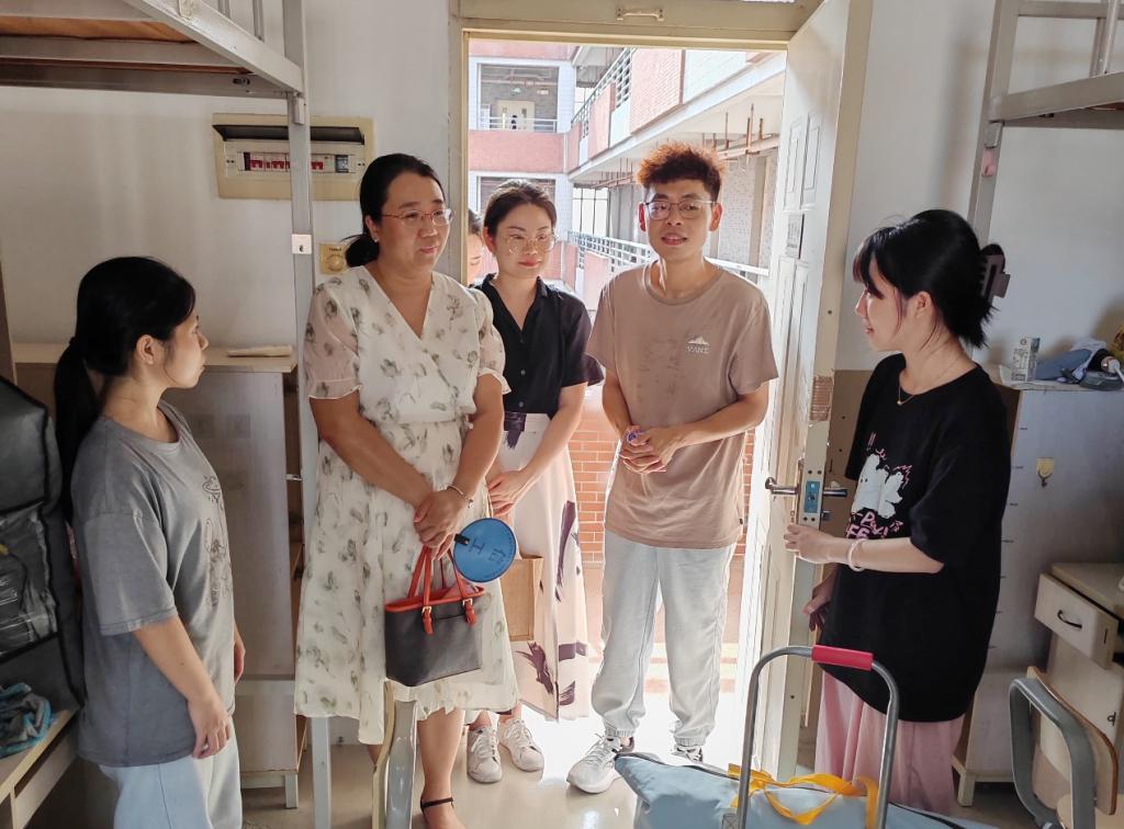 为了给新生创造温馨的入学氛围,确保他们能够迅速适应校园生活。学院院长衣杨教授、党总支书记邱泽敏老师、党总支副书记帅莉老师、学院副院长王风老师、各系主任、辅导员、班主任一行,深入新生宿舍进行走访慰问。与新生们亲切交谈,详细询问他们对新环境的感受、生活需求及对未来的规划,鼓励他们珍惜大学时光,积极融入集体,勇敢追逐梦想。同时,还耐心解答了他们关于课程安排、社团活动、生涯规划等方面的疑问。学院领导们的关怀与鼓励让新生们倍感温暖和鼓舞。