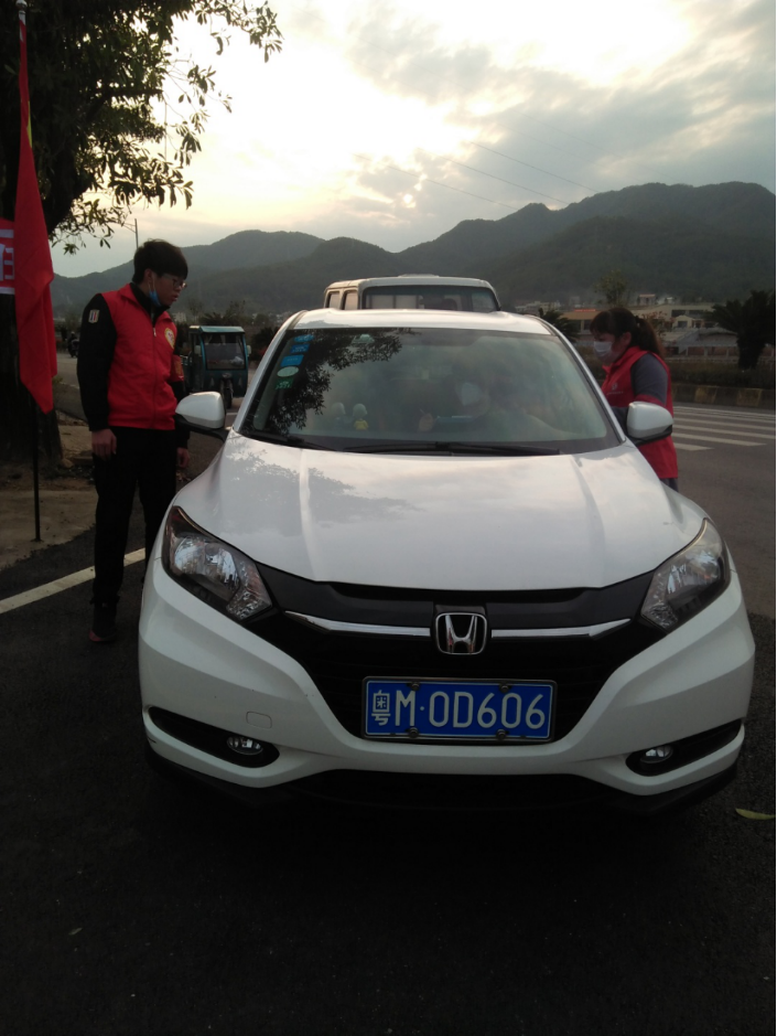 2019级计算机科学与技术专业的黄楷秉持着在信息科学学院铭爱志愿队学习到的志愿服务精神,承担起村口防疫检查工作,在霞黄李田的村口防疫检查点与其他志愿者们一起检查入村的车辆并记录有关信息。