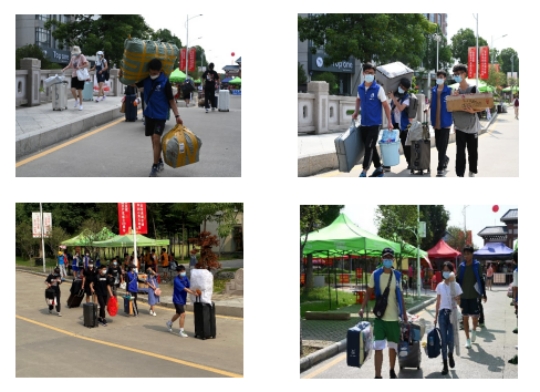 一路上,志愿者们不辞劳苦,热情的帮助新同学们搬运行李,并耐心的为他们答疑解惑。