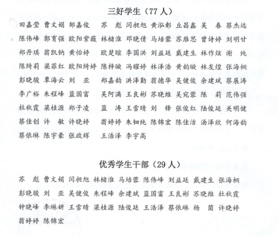 根据中山大学新华学院《关于评选2019学年中山大学新华学院三好学生的通知》、《关于评选2019学年中山大学新华学院优秀学生干部的通知》及相关办法,经个人申请、班级初评以及院初审,永利yl234112019-2020学年校三好学生、优秀学生干部评审工作初步完成,现将评选结果予以公示,终审名单以学校名单为准,评选结果公示如下。