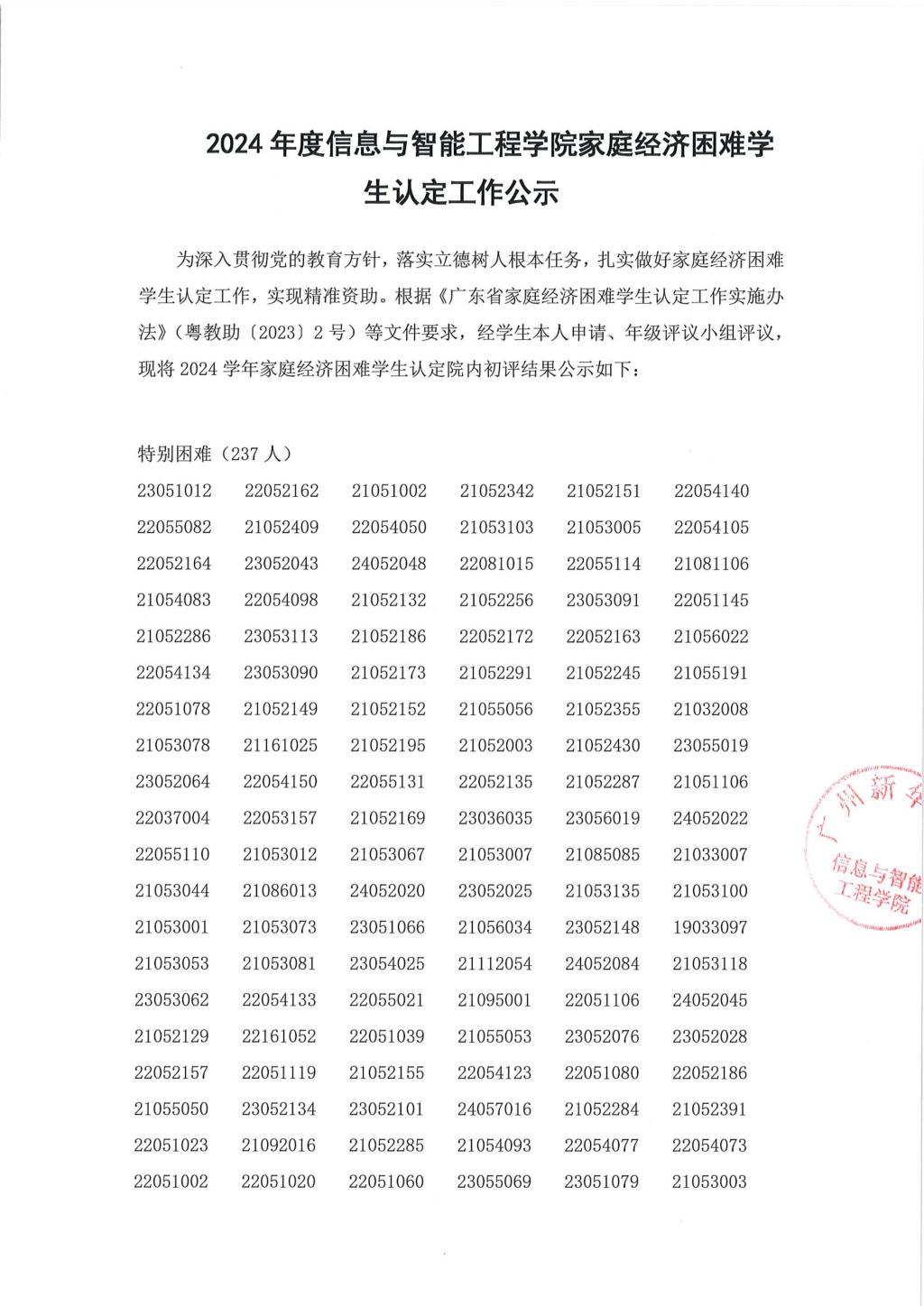 【公示】2024年度永利yl23411,永利yl23411家庭经济困难学生认定工作公示