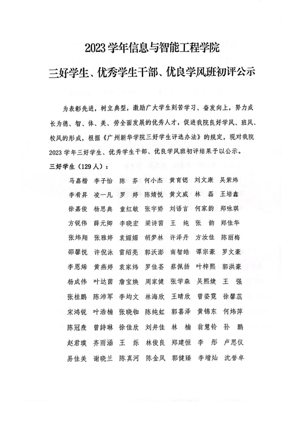 2023学年永利yl23411,永利yl23411三好学生、优秀学生干部、优良学风班初评公示.pdf