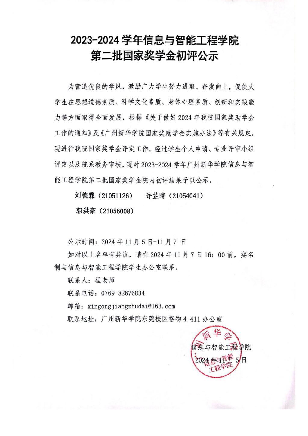 【公示】2023-2024学年永利yl23411,永利yl23411第二批国家奖学金初评公示