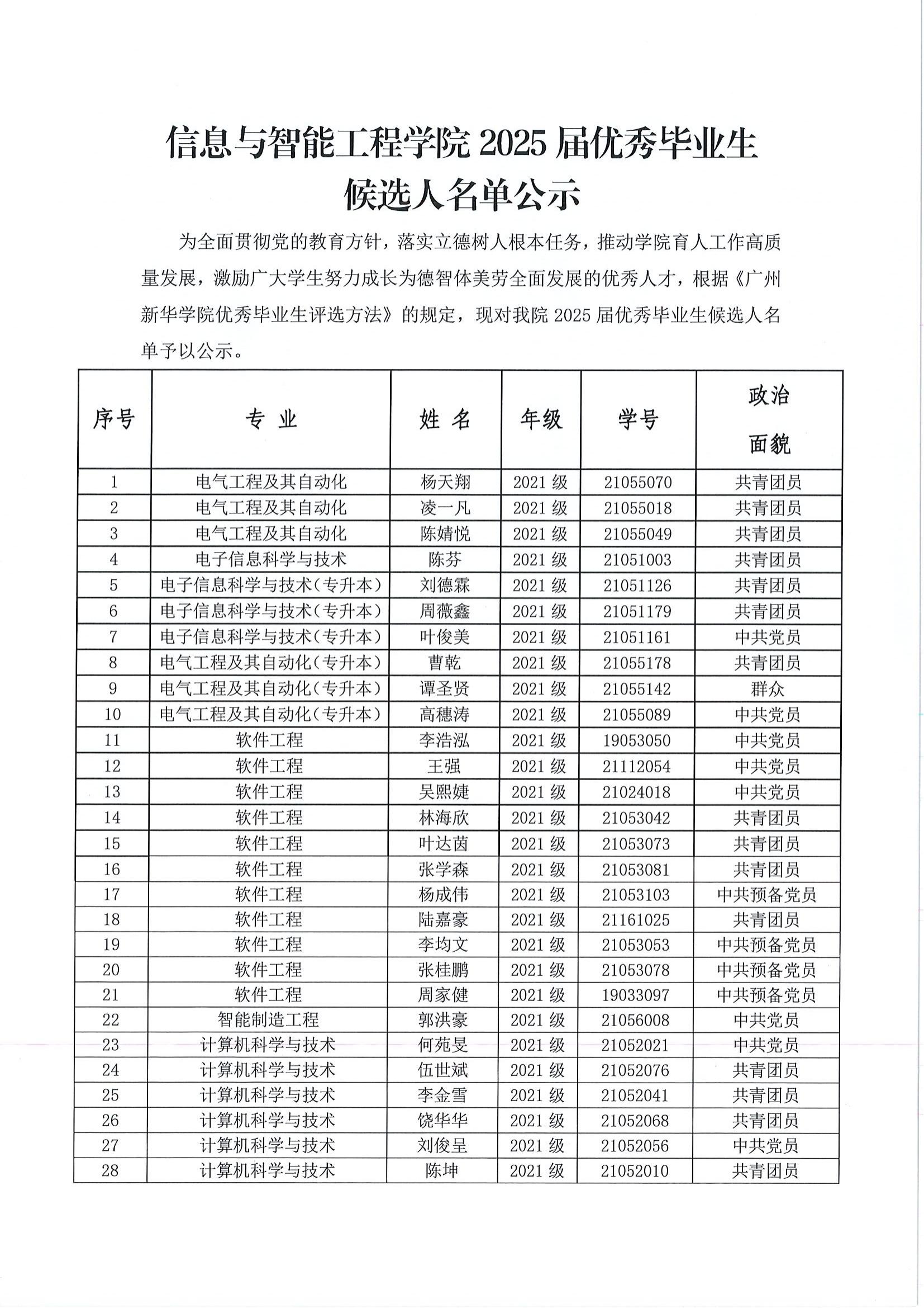 【公示】永利yl23411,永利yl234112025届优秀毕业生候选人名单公示