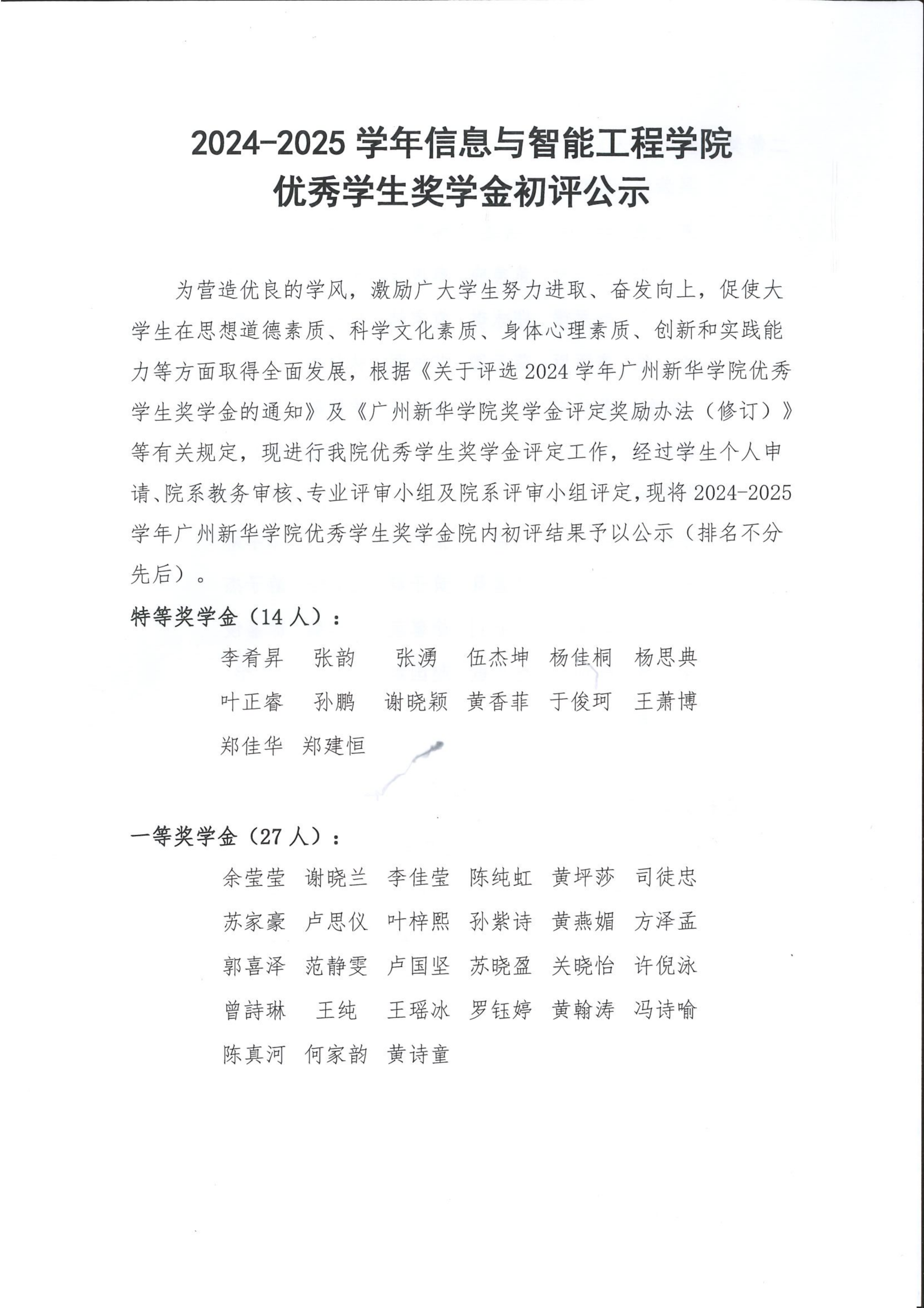 2024-2025学年永利yl23411,永利yl23411优秀学生奖学金初评公示.pdf