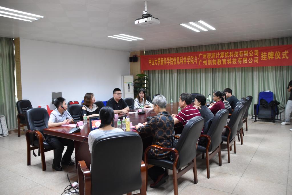 中山大学新华学院教务处处长尹小川、信息科学学院副院长李宁、数字媒体专业主任李晓宁;漫游科技公司杨晓微总经理、校企合作部门钟启鸿经理;邢帅教育校企合作部门王华经理、黄烨如经理以及相关专业教师代表出席了本次仪式。会议由数字媒体技术专业主任李晓宁主持。