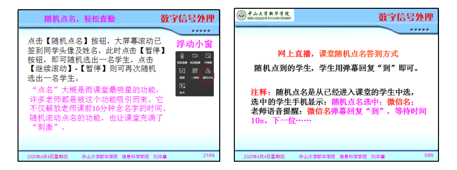 刘华章老师采用雨课堂直播介绍学生进入课堂和签到方式