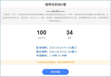 学生进入考试界面,学生查看考生须知、考试时间、身份检验