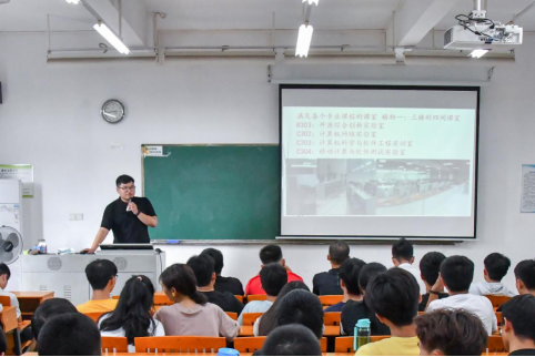 实验室管理员许志明老师先是通过列举实验室安全事故以及存在的安全隐患,使同学们在思想上高度重视实验室安全问题,提醒同学们自觉遵守实验室规章制度。接着从多个方面给同学们介绍了信息科学学院的专业实验室及其设备,最后向同学们具体提出了几点课室要求。