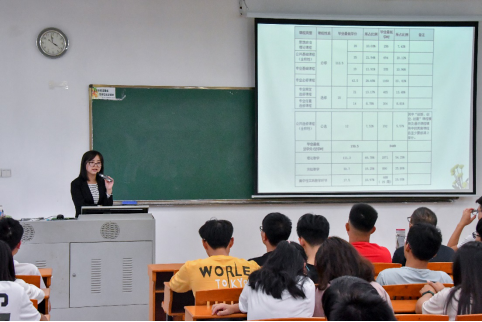 教务处叶大慧老师向同学们介绍了教学工作及学籍管理(包括入学注册、本科教学的主要内容、课程与学分、学制与学习年限、课程修读、课程考核与成绩记载、缓考重考与重修、辅修专业和双学、考勤、奖励与处分、毕业学士学位的授予)。