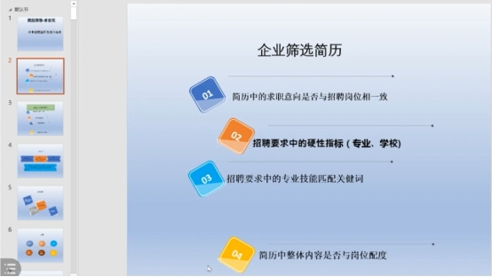 曾老师拥有八年就业指导工作经验,擅长人力资源板块的招聘与培训。她从校企合作招入人才、明确就业方向及完善简历、分享企业需求及相关技术、提供企业方案四方面向未就业同学分享了就业经验。