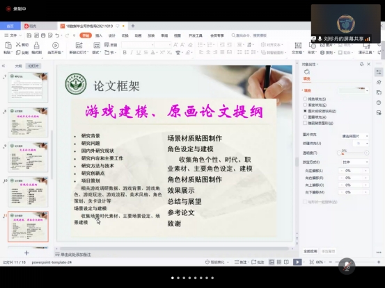 刘珍丹老师以论文框架为主要介绍对象,从不同的毕业设计方向出发,将每个毕业设计方向对应的论文写作框架都展现在学生面前,并加以讲解,让学生对毕业论文的主要内容有一个总体的印象,从而能更好进行毕业论文的设计及撰写。