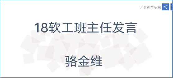 本次会议由2018级软件工程辅导员徐艳梅主持召开,出席会议的有软件工程专业主任赵小蕾老师、18级软件工程班主任骆金维老师以及17级部分优秀的师兄师姐。