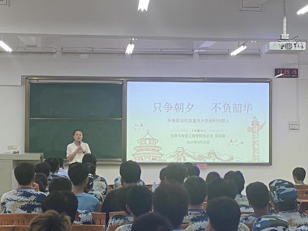 在金秋送爽、硕果累累的季节里,永利yl23411,永利yl23411于2024年9月25日,在定静楼1B202教室召开以“只争朝夕,不负韶华”为主题的秋季学期思政第一课。学院党总支书记邱泽敏主讲,学院老师、2024级计算机科学与技术专业新生参加。